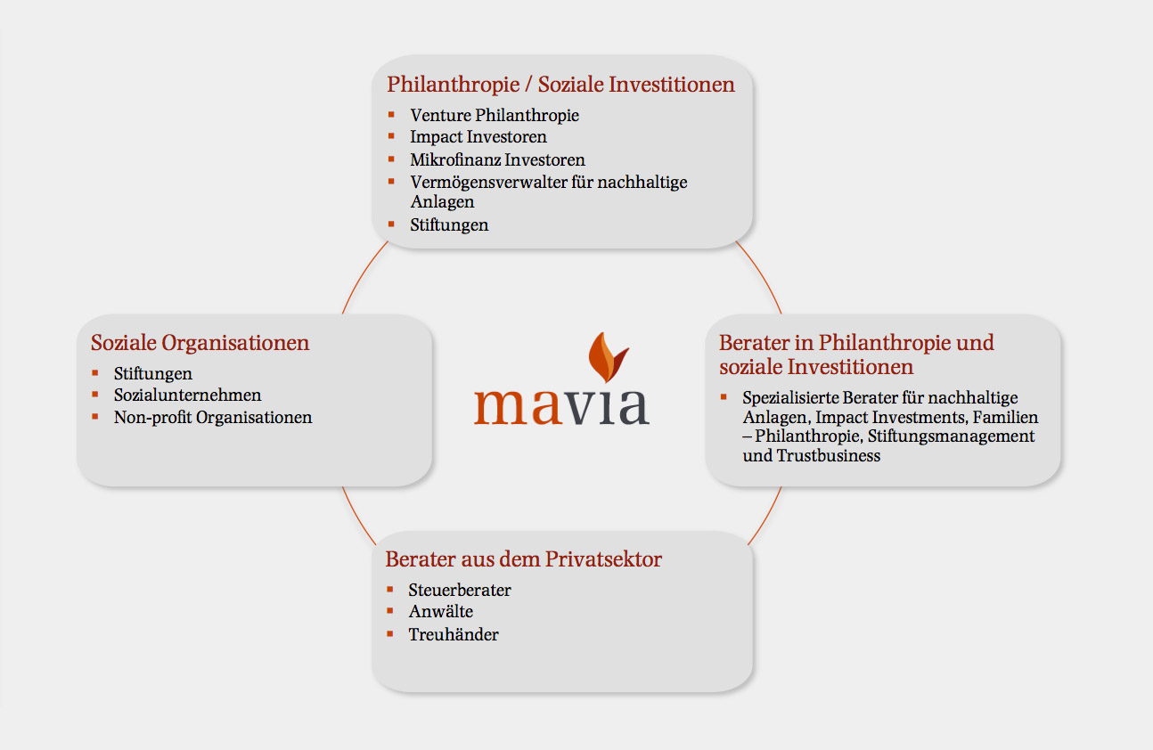 Für Ihre philanthropischen Engagements und sozialen Investitionen helfen wir Ihnen die richtigen Partner zu suchen. Dabei prüfen wir diese zuverlässig und verhandeln kompetent die Verträge.